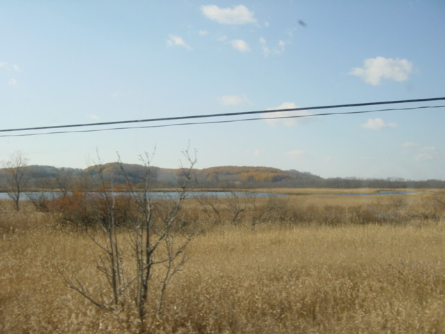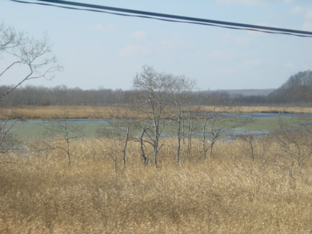 電車から湿原を望む