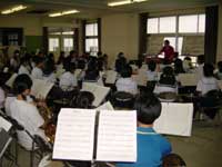 ↑ 幸田北部中学校との合同練習会の様子です。トランペットを吹きながら、ていねいに指導をして下さいました。