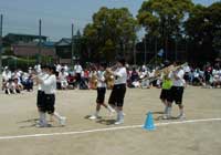 運動会の「部活対抗リレー」の1コマです。ちなみに、2位でゴールしました。