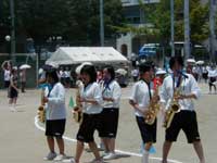 サックス5人は「ひょっこりひょうたん島」を演奏しながら行進。 木管5重奏は「世界に1つだけの花」 金管らしく「鉄腕アトム」 最後の金管は……(?_?)