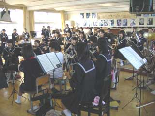 ウォーミング・アップ (生徒の指揮で〜日替りで交替〜。先生はその後ろで聴いてます。)
