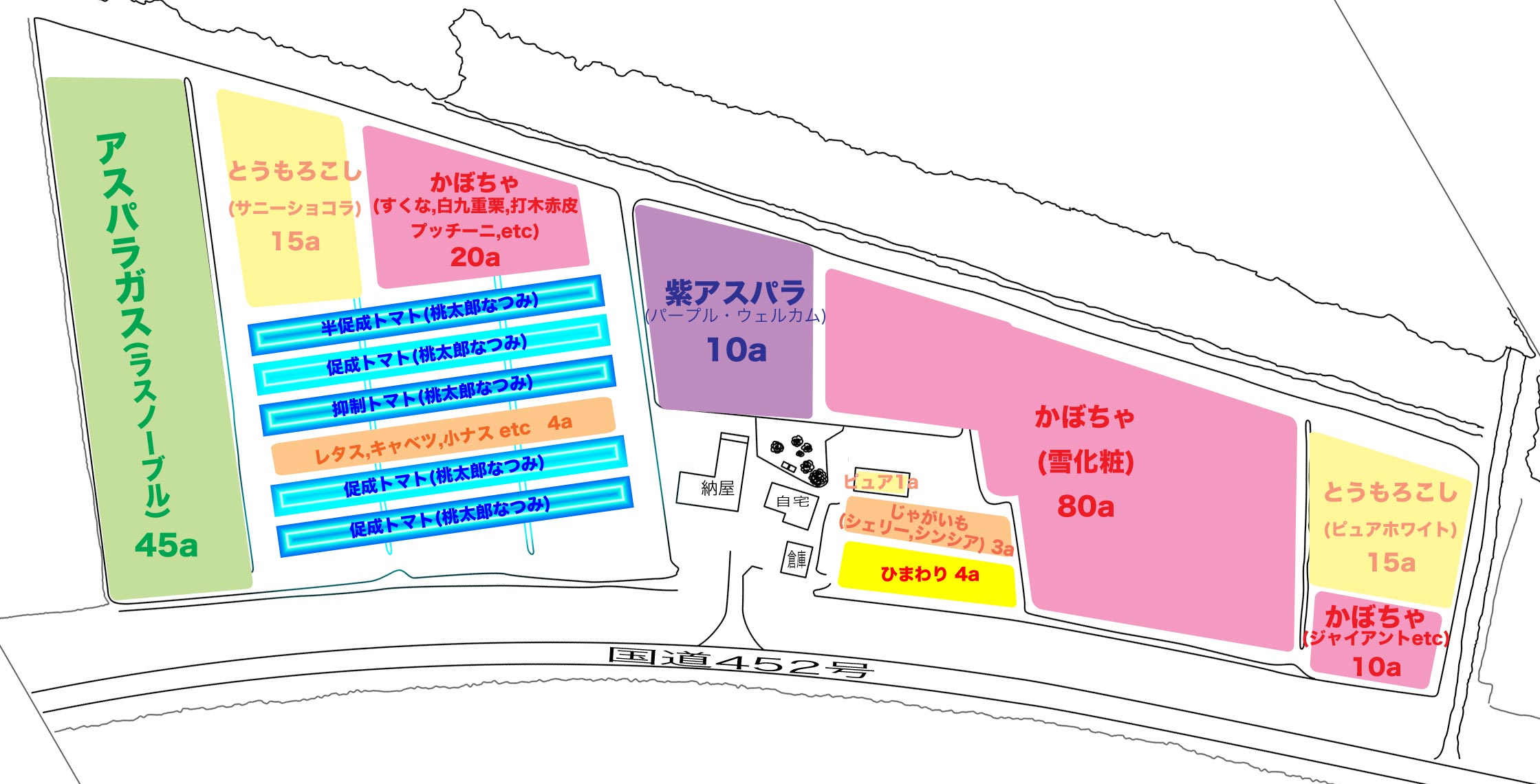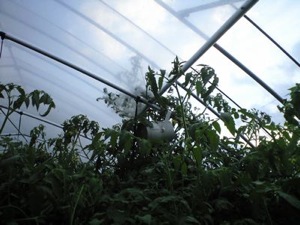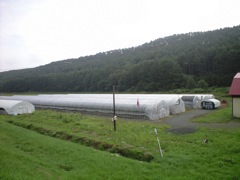 | おっと! 音楽を聴いているのはトマトだけじゃないですよ。 同じハウスの中やハウスの周りにいるメロン、パプリカ、アスパラガス、カボチャたちもまた日クラシックを聴いて育っています。 もちろん、作業しているボクたちもね♪ |