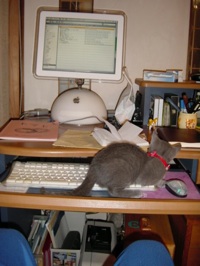 店長のちゃいこです。「ぽこ♪ぽこ ふぁ〜む」の長男で8歳のロシアンブルーです。 |