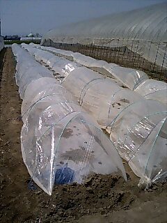 気温が低い時期に播種する時は、播種前にマルチを敷いて地温を高めたり、播種後に雨よけトンネルをしたりします。