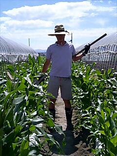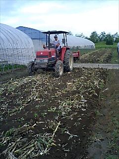 収穫後のとうもろこしは、ある程度枯らせて畑にすき込みます。収穫が終わったら緑肥になるってのは、ある意味リサイクルしてるわけで、なんとも環境に優しい作物ですね。てか、トラクタでとうもろこしを倒して行くのはけっこう爽快です。