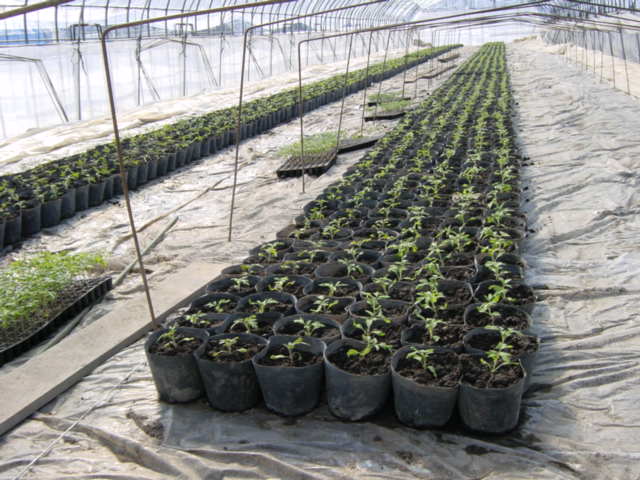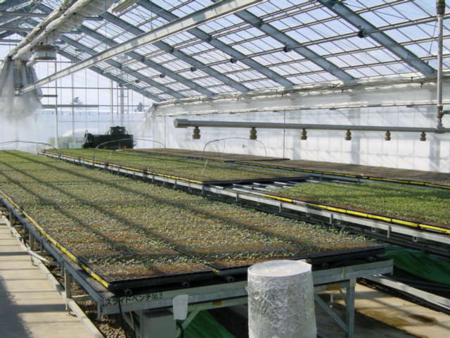 その1週間前までにポットに土詰めを済ませておき、水をかけておきます。また、上にビニールをかぶせてポットの温度を上げ、下はヒートパイプで