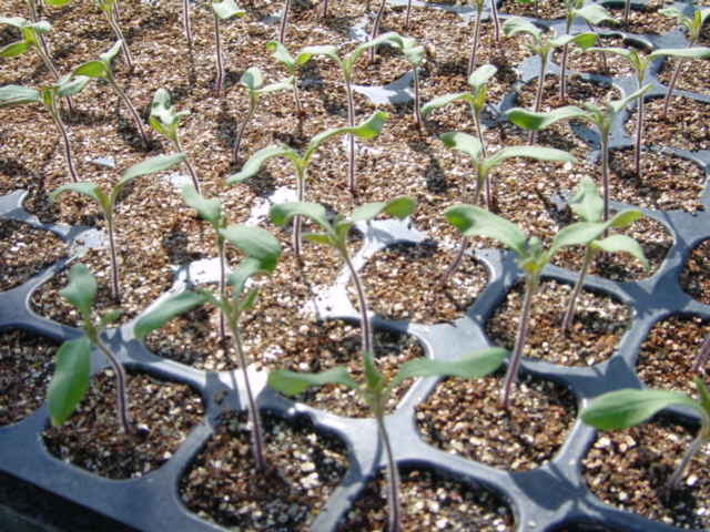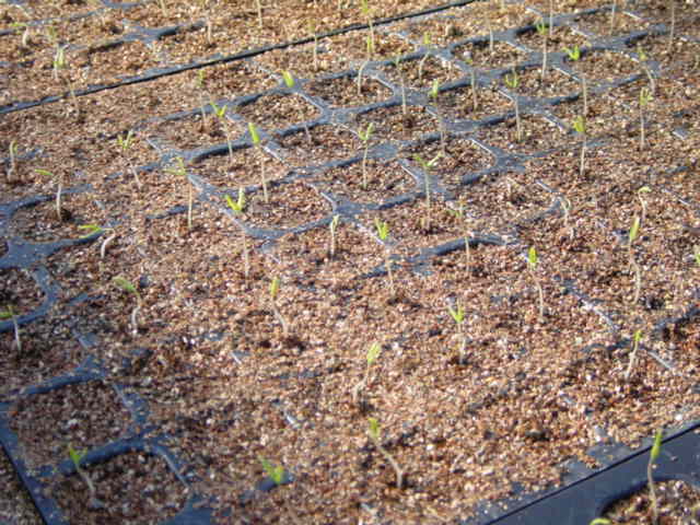 苗はセルトレイでやって来ます。1トレイに128ヶ植わっていますが、必ずしも全てが使えるわけではありません。元気のない苗、根が巻いていない苗、生長点が二股に分かれている苗などは使いません。