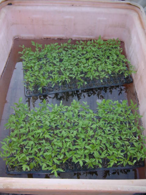 セルトレイは少し水につけて、根の周りの土とポットの土とがしっかり付くようにします。