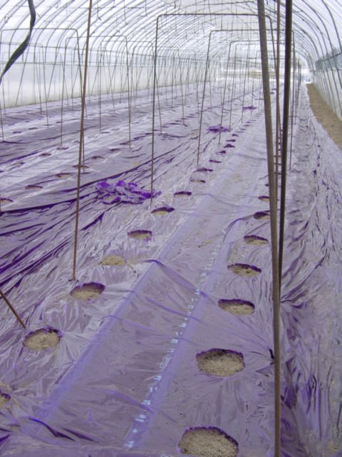 紫色のマルチ……。ちょっと幻想的な雰囲気です。